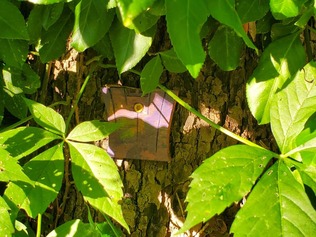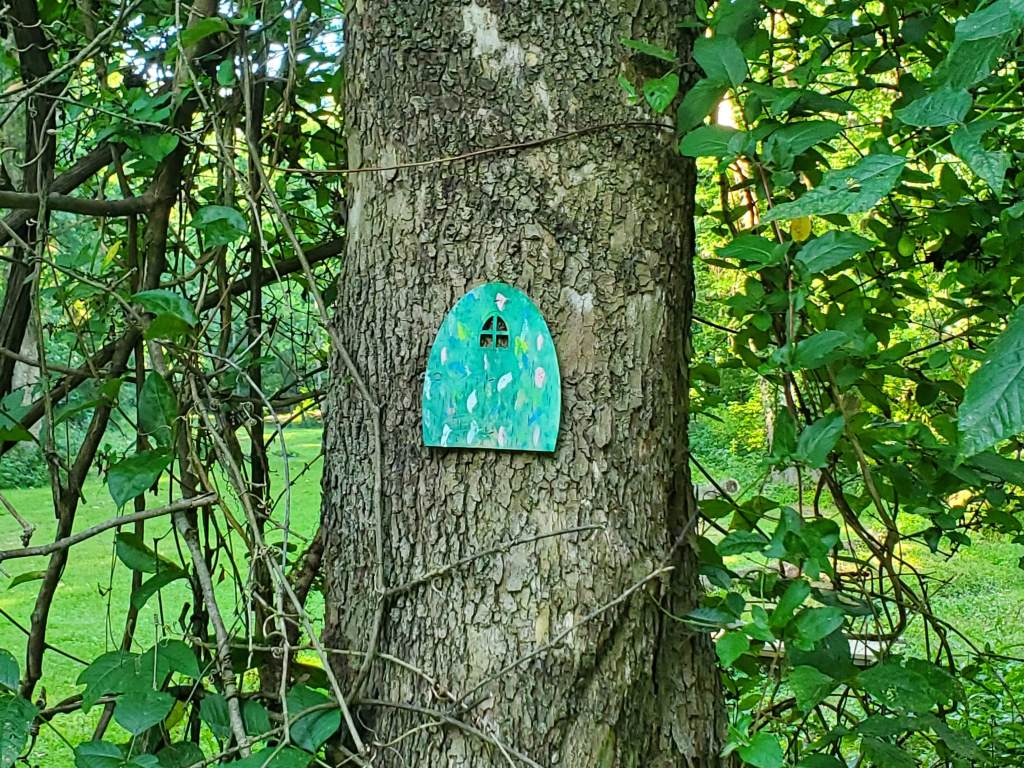 My happiness moment for today was a bit of whimsy along the trail at the city park where I walked. I have followed this path many times, and only today – because I was paying attention, seeking joy – I noticed some of the fairy houses that were hidden under leaves and against roots.