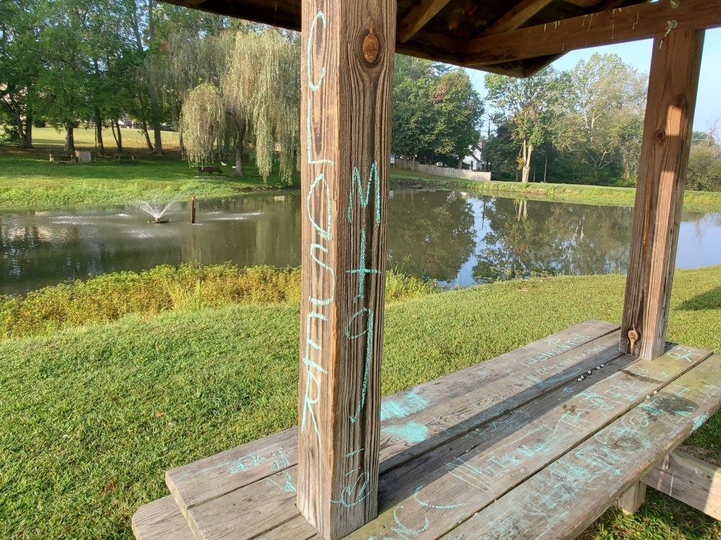 While walking at Valley Park last week, I noticed this sign written in chalk on the post of a picnic table: Closer Meeting. Of course, I saw this as a sacred invitation to see what else had been written there! And the very first words I read brightened my spirit. “Have a great day! You matter!”