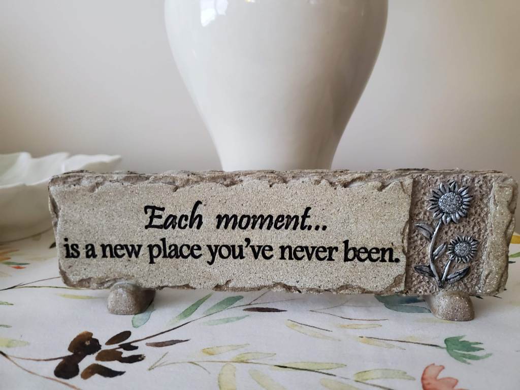The words on the plaque lifted my spirits by reminding me that each moment holds potential. Our very next moment might offer an invitation to an exciting adventure, or inspire a meaningful thought, or become a memorable experience. The idea that life will never be stagnant, that at any moment life could change, gave me much hope.