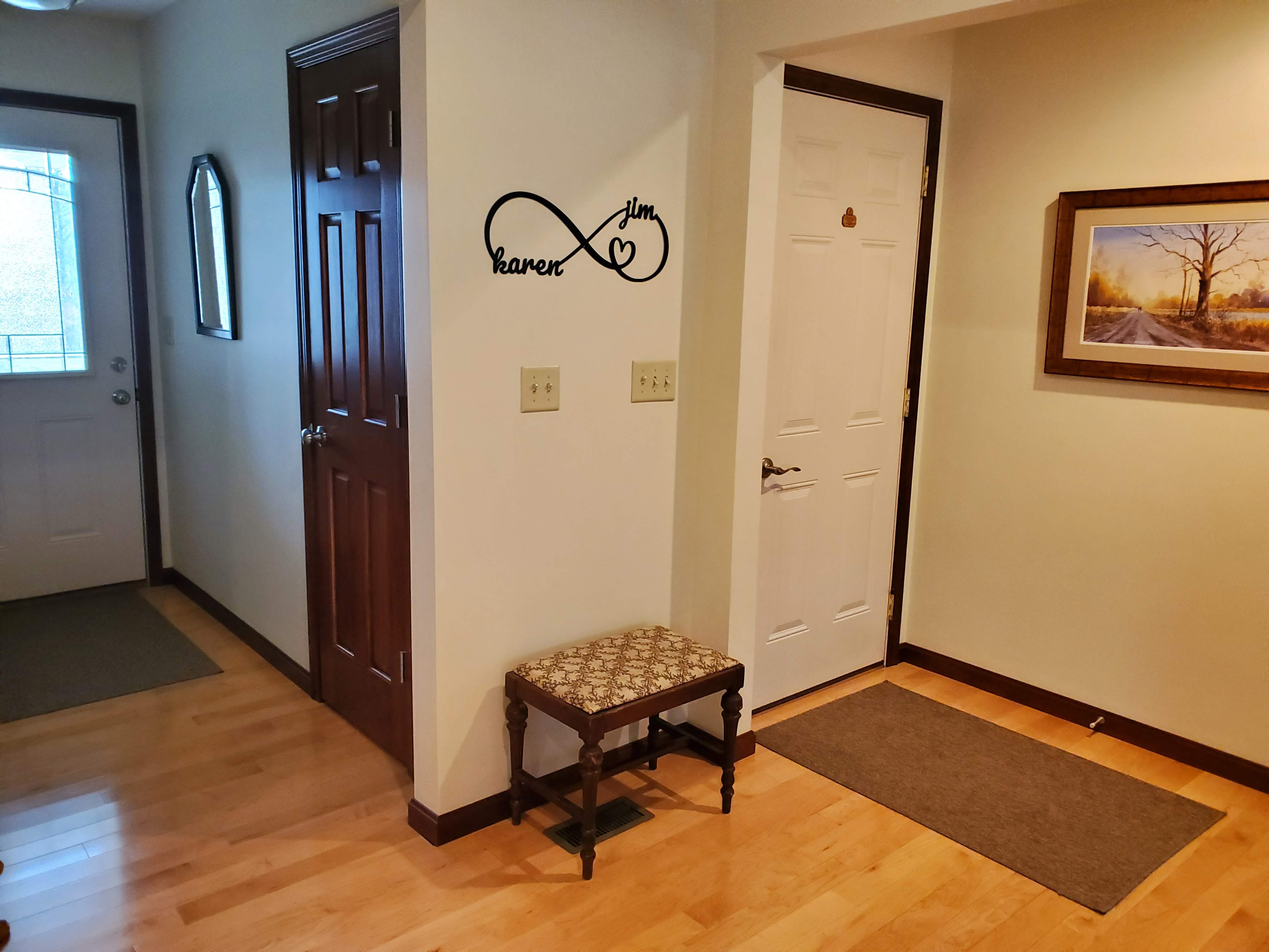 We adopted this little bench when Jim’s mom moved to a smaller place, and now we sit here to remove our shoes when entering our home. In those moments, I often think of God’s words to Moses at the burning bush, “Remove the sandals from your feet, for the place on which you are standing is holy ground,” for I like to envision our home as a spiritual sanctuary for us and our guests to abide (Exodus 3:5).