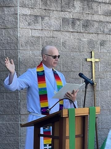 This morning, our two local churches–Cross of Grace Lutheran and St. Timothy’s in the Valley Episcopal–gathered together for an outdoor worship service and picnic. We also honored my husband, Jim, on his 30th Anniversary of Ordination into Ministry!
