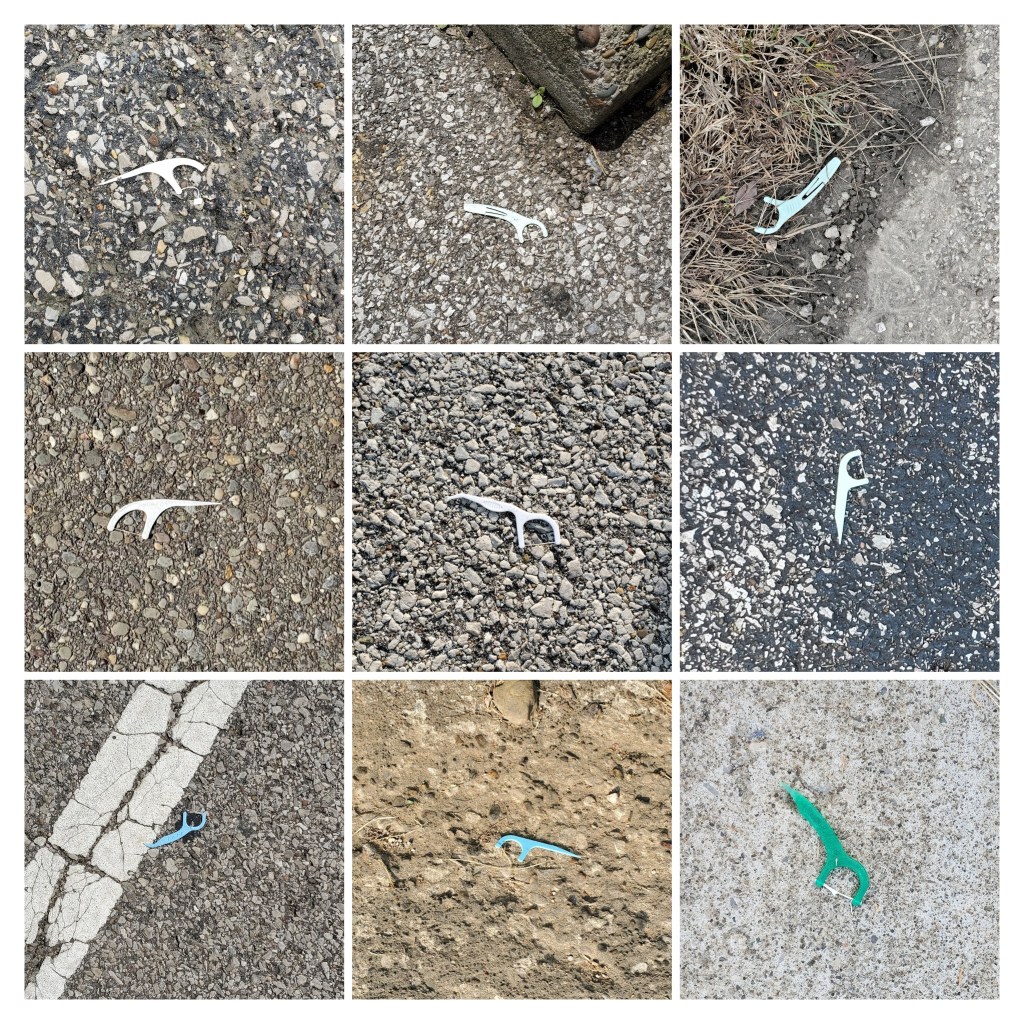 Rather than taking a photo, I should pick up these flossers and discard them properly… one small change I can make to contribute to a cleaner environment.