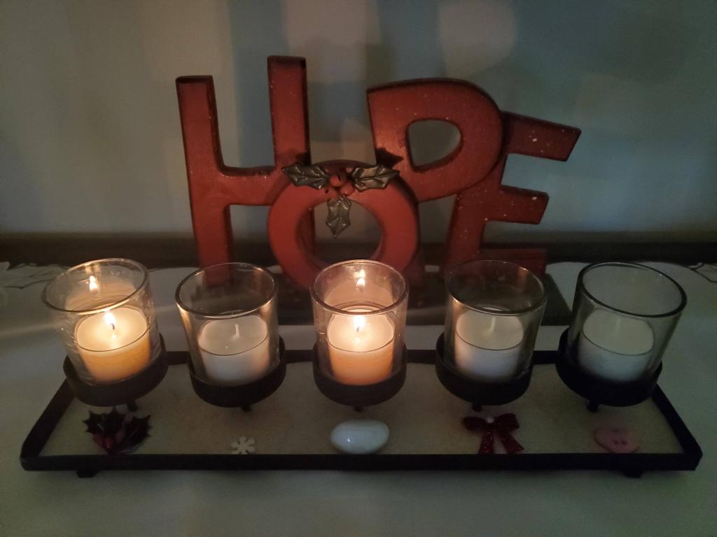 (You may appreciate having a small practice to serve as a daily reminder in this Advent time. As we reflect on our hope in Christ this week, I plan to light a candle and remember Jesus as our light of hope.)