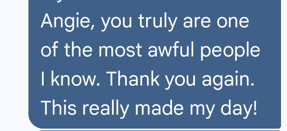 Some of life’s lessons are very embarrassing ones. The lesson for me that morning is that I should NEVER use the speak-to-text capability on my cellphone without reviewing it! Here is what Angie received: